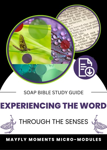 Explore the heart of Mayfly Moments with this beautifully crafted resource guide—your doorway to deeper spiritual growth through all five senses. Let this document lead you toward resources that nourish your faith, strengthen your walk, and make each moment with God richer and more intentional.