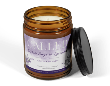 This grounding blend of White Sage and Lavender helps clear distractions and calm the spirit, creating space to listen for God’s direction. It’s a scent designed for prayer, journaling, and intentional reflection—when purpose needs clarity and the heart needs stillness.